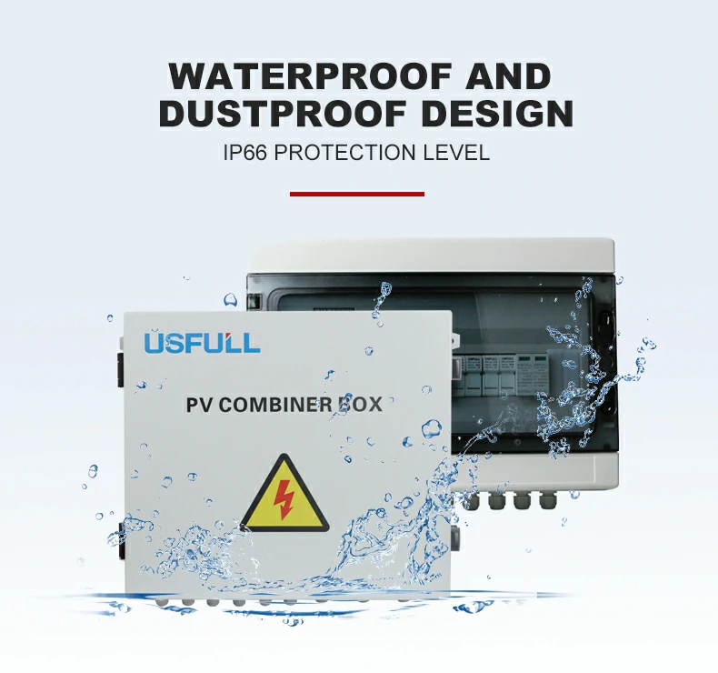 La caja combinadora solar de la serie FUCB es a prueba de agua, a prueba de polvo, y cuenta con funciones de protección contra sobrecarga, protección contra rayos, protección contra sobrecorriente, entre otras. La caja combinadora cumple con los requisitos para un uso prolongado tanto en situaciones al aire libre como en interiores.